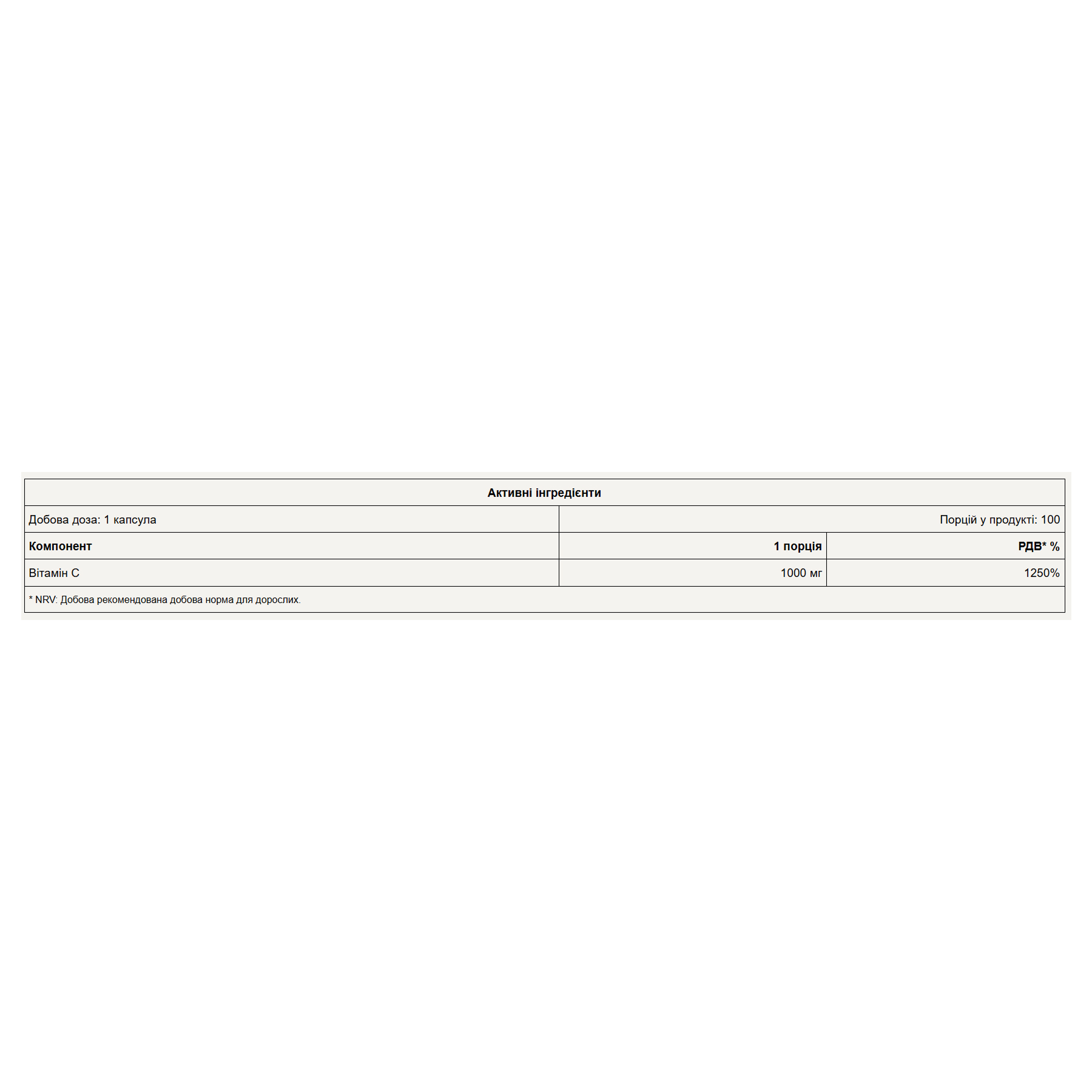 Склад : L-аскорбінова кислота, оболонка капсули [бичачий желатин, очищена вода, барвник (оксиди та гідроксиди заліза)], агент, що запобігає злежуванню (магнієві солі жирних кислот).
