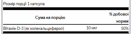 Зміцнюйте здоров'я кісток за допомогою Swanson Vitamin D3! Вітамін D, часто званий сонячним вітаміном, також підтримує імунне та емоційне здоров'я. Дослідники та медичні працівники у всьому світі розуміють важливість адекватного рівня вітаміну D в організмі, і ви теж це розумієте! Кожна капсула містить 400 МО вітаміну D.