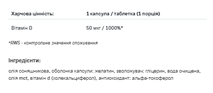Вітамін D допомагає у правильному засвоєнні кальцію та фосфору, підтримує здоров'я кісток та зубів та надає позитивний вплив на правильне функціонування м'язів та імунної системи.