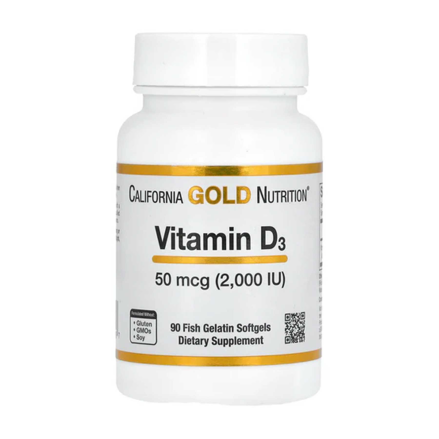 California Gold Nutrition® Вітамін D3, 50 мкг (2000 МО) — це добавка вітаміну D у вигляді холекальциферолу в м’яких капсулах з риб’ячого желатину.