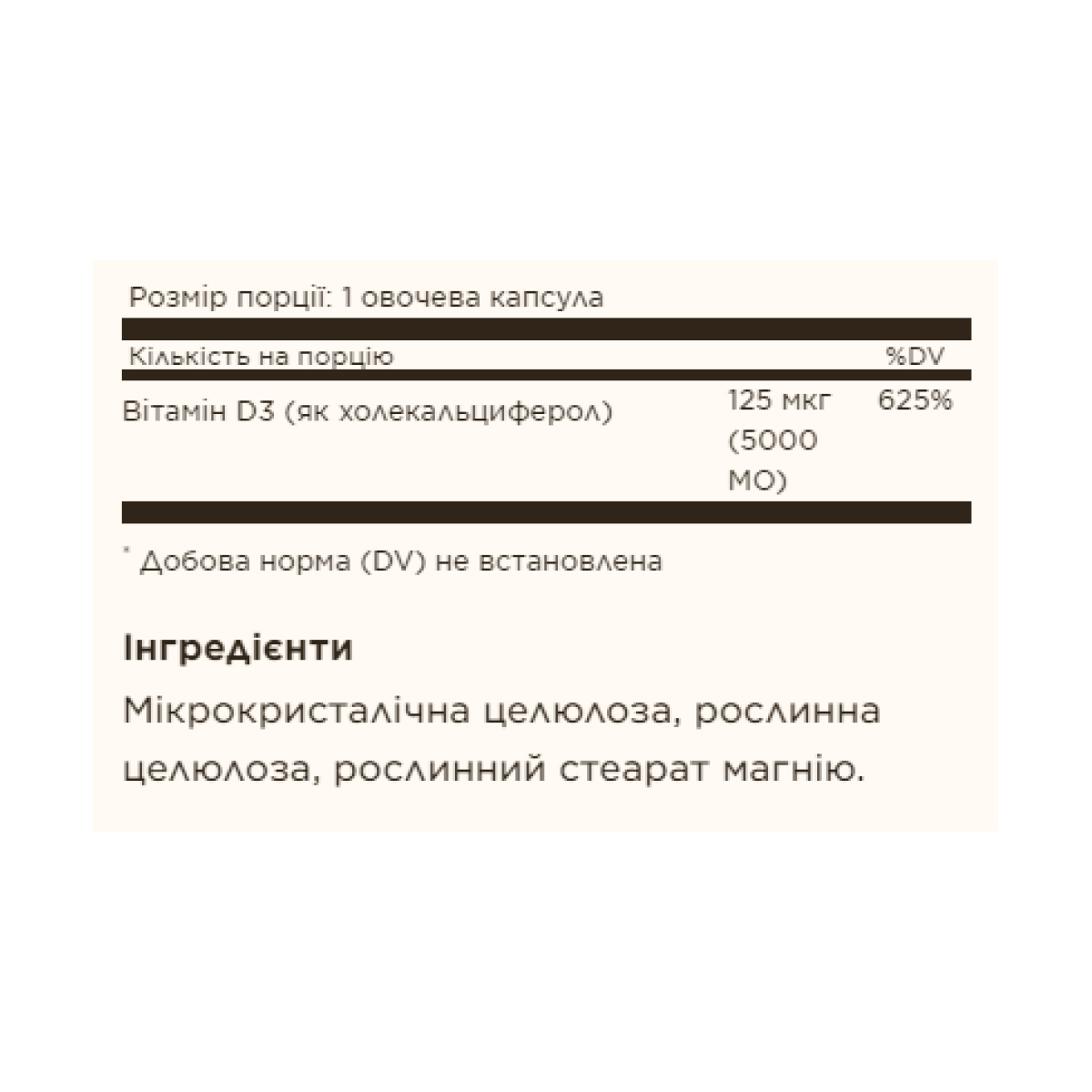 Vitamin D3 (Cholecalciferol) 125 mcg (5,000 IU) – 60 vcaps