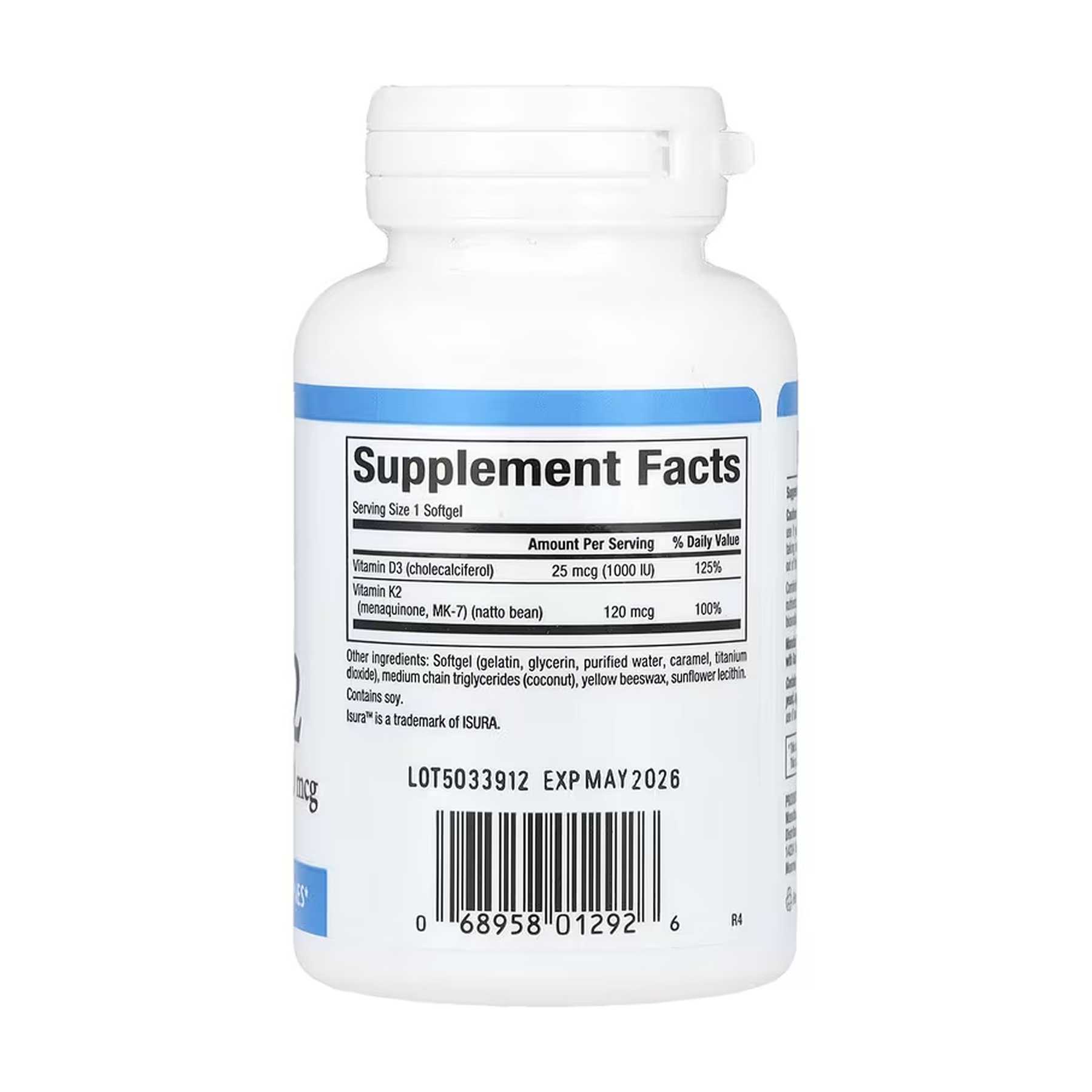 Vitamin D3 & K2 25 mcg (1000 IU) & 120 mcg – 60 softgels