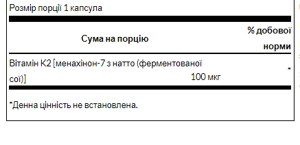 Містить вітамін К2 із 100% натурального японського натто, ферментованого соєвого продукту.