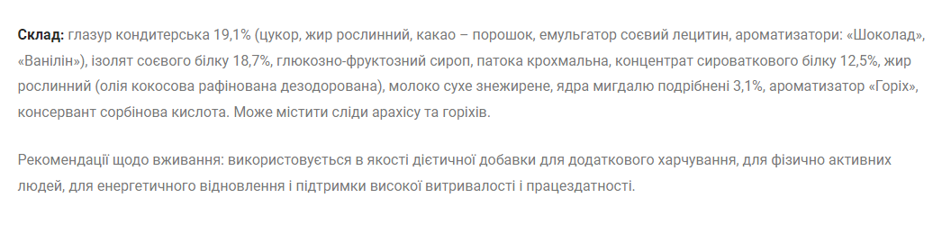 - значну вагу батончика;