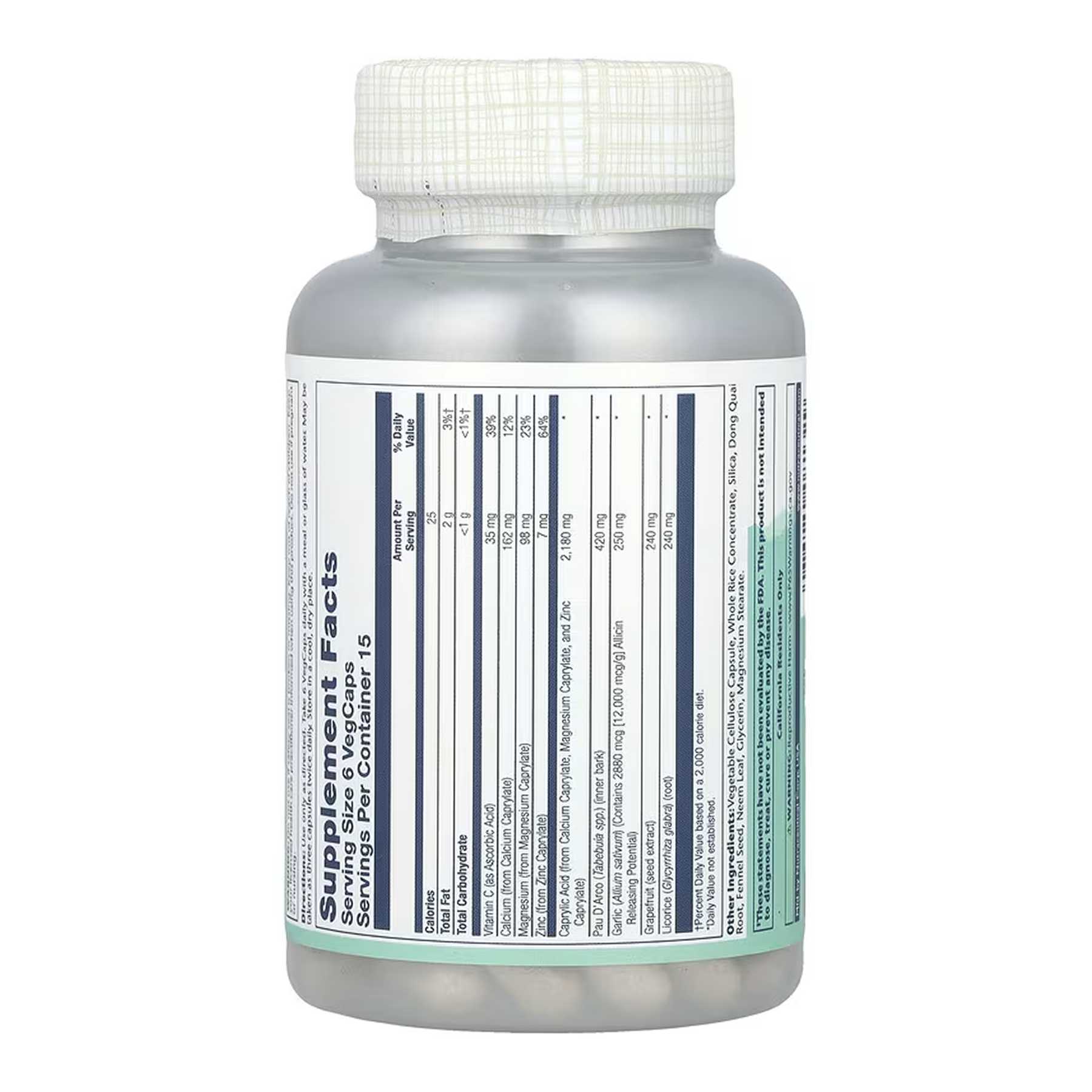 Solaray Yeast Cleanse — це комплексна рослинна формула, спеціально розроблена для підтримки здорового балансу мікрофлори організму та контролю над ростом дріжджоподібних грибів, зокрема Candida albicans. Препарат поєднує в собі екстракти натуральних рослин, кислот і поживних речовин, які діють синергічно для очищення організму від надлишкових дріжджів, підтримки роботи печінки, кишечника та імунної системи.