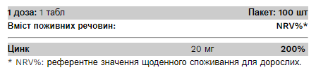 Дієтична добавка цинку в таблетках із 20 мг активного інгредієнта цинку на дозу.