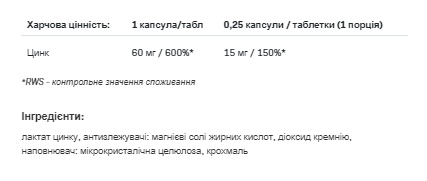 Лактат цинку – одне з найефективніших форм з погляду ступеня засвоєння цинку. Цинк є елементом, який вважається одним із необхідних мікроелементів, які мають бути забезпечені в раціоні. Він бере участь у багатьох змінах та біохімічних процесах в організмі людини. Це важливий мінерал, що бере участь у більшості метаболічних процесів в організмі.
