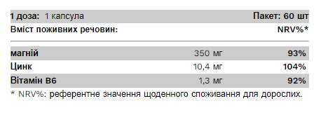 Упаковка:  60 капсул (60 порцій) – 1 порція: 1 капсула